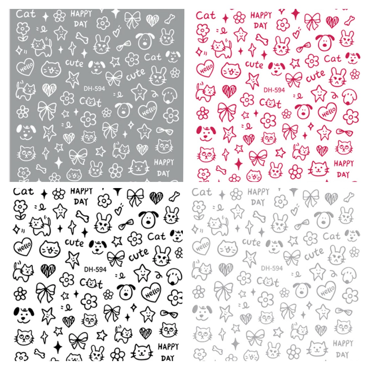 Cat Doodle لطيف الكرتون Pacchard Dog ملصقات مانيكير