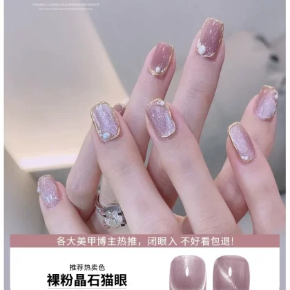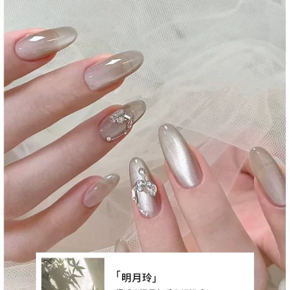 طلاء الأظافر عيون Cat يظهر أبيض وميض من حجر القمر الملبس بالخرز