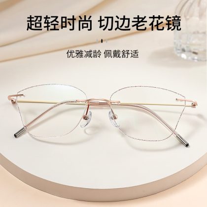 | nameOriginal | Cat's eye reading glasses anti-blue light diamond rimless glasses women's 5703 ultra light Danyang reading glasses wholesale |