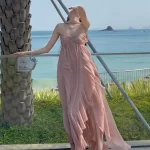 | nameOriginal | Celebrity halter neck tube top and backless irregular chiffon dress |
