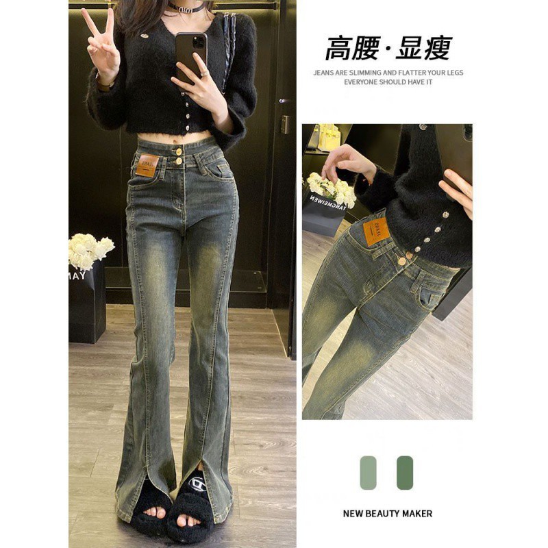 | nameOriginal | Cement gray split micro-jeans women's early spring 2024 new high waist slimming design sense niche flared pants |