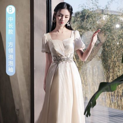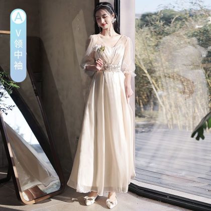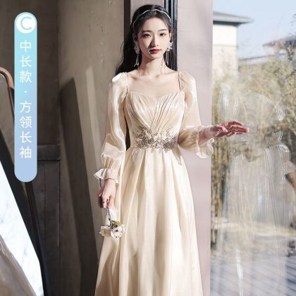 | nameOriginal | Champagne Bridesmaid Dress 2024 New Niche High-end Wedding Sisters Dress Women's Normal Wear Long Dress  |