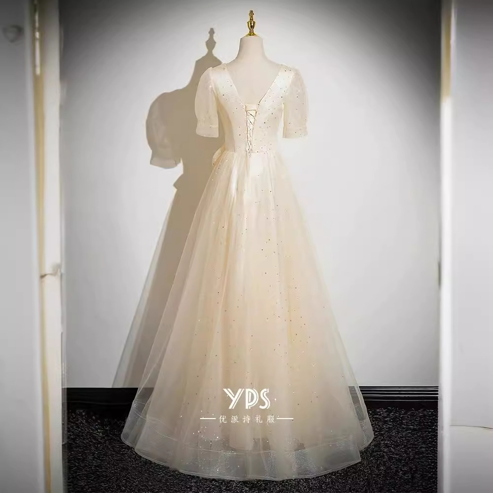 | nameOriginal | Champagne Evening Dress Dress 2024 New French Style Light Luxury Niche Art Test Performance Banquet Elegant Adult Ceremony Summer |