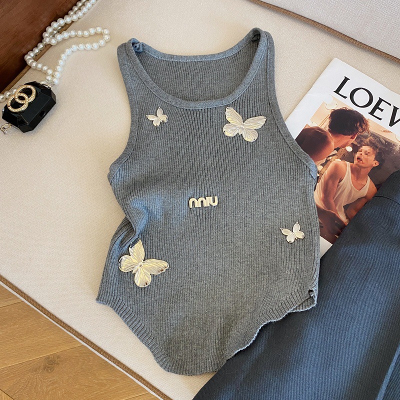 | nameOriginal | Chanel Style Butterfly Pin Knitted Vest Women's 2024 Summer New Outfit Sleeveless T-shirt Design Sense Top |