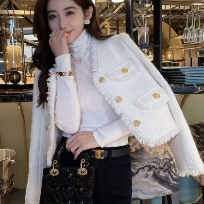 | nameOriginal | Chanel style coat 2024 autumn and winter New light luxury tweed French style white short top for women |