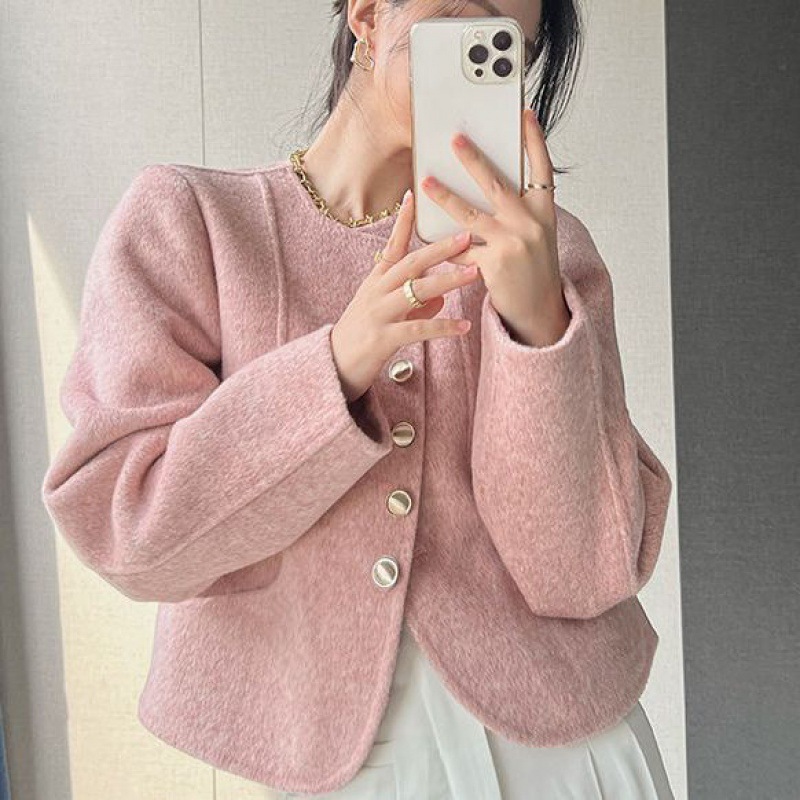 Chanel style coat women's autumn and winter New round neck single-breasted woolen coat women's design sense small woolen top