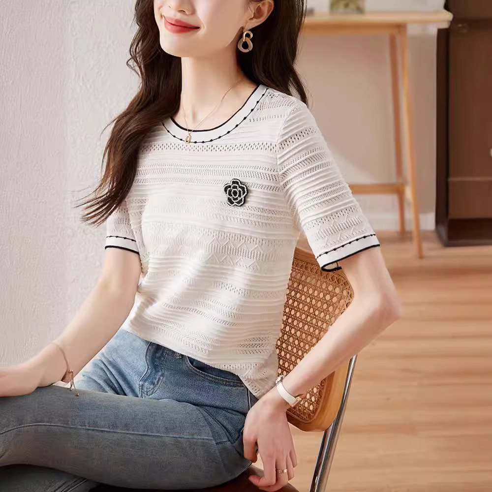 | nameOriginal | Chanel Style Knitted Shirt Short-sleeved T-shirt Women's Summer 2024 New White Top Design Sense Small Shoulder T-shirt |