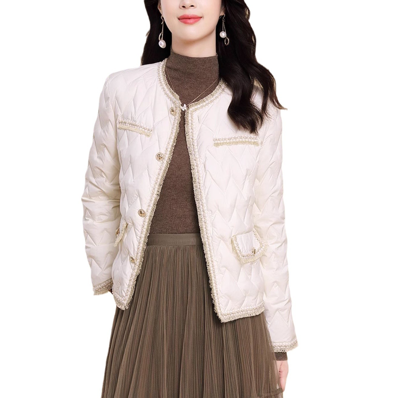 | nameOriginal | Chanel style short down jacket for women 2024 new women's clothing Korean style loose plus size 90 white duck down Pinghu |