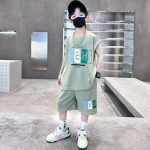 | nameOriginal | Chao Brand Boys Summer Dress suit American Sleeveless 2024 New Style Big Boys Fried Street Boys Shuai Summer Two-Piece Set |