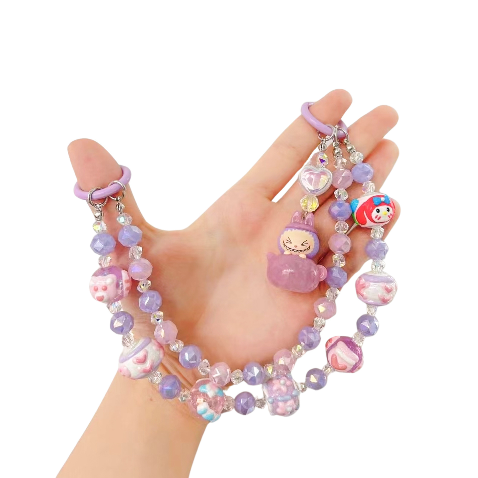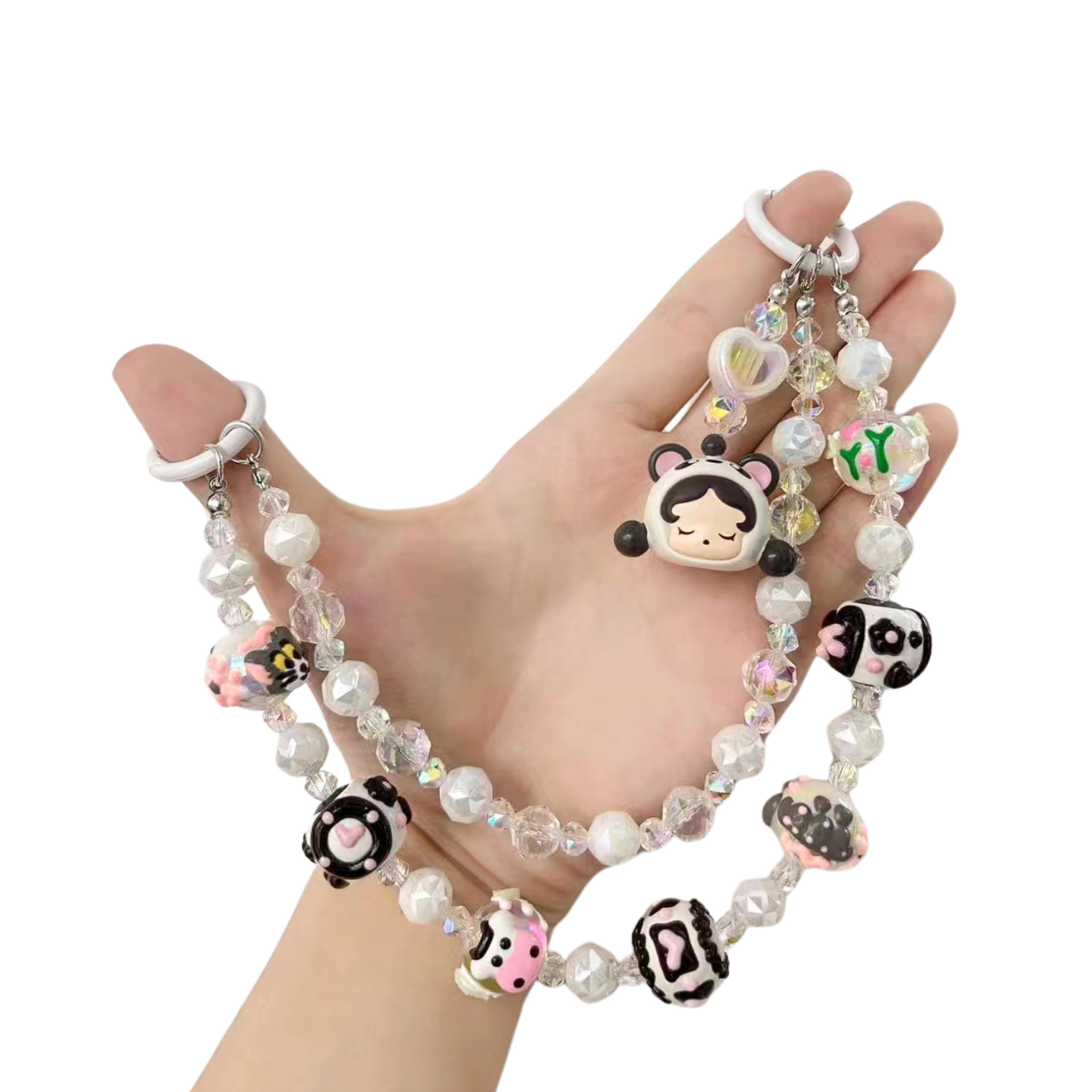 Chao Play Cute Grain Mobile Phone Chain SP Crying Baby Labubu Live Mobile Phone Case Hanging Wrist Double Chain Beads Hand-painted Beads Hanging Chain