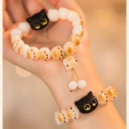 | nameOriginal | Charcoal roasted white jade bodhi root little black cat cute cat claw bracelet bracelet for boys and girls ebony black cat toy bracelet |