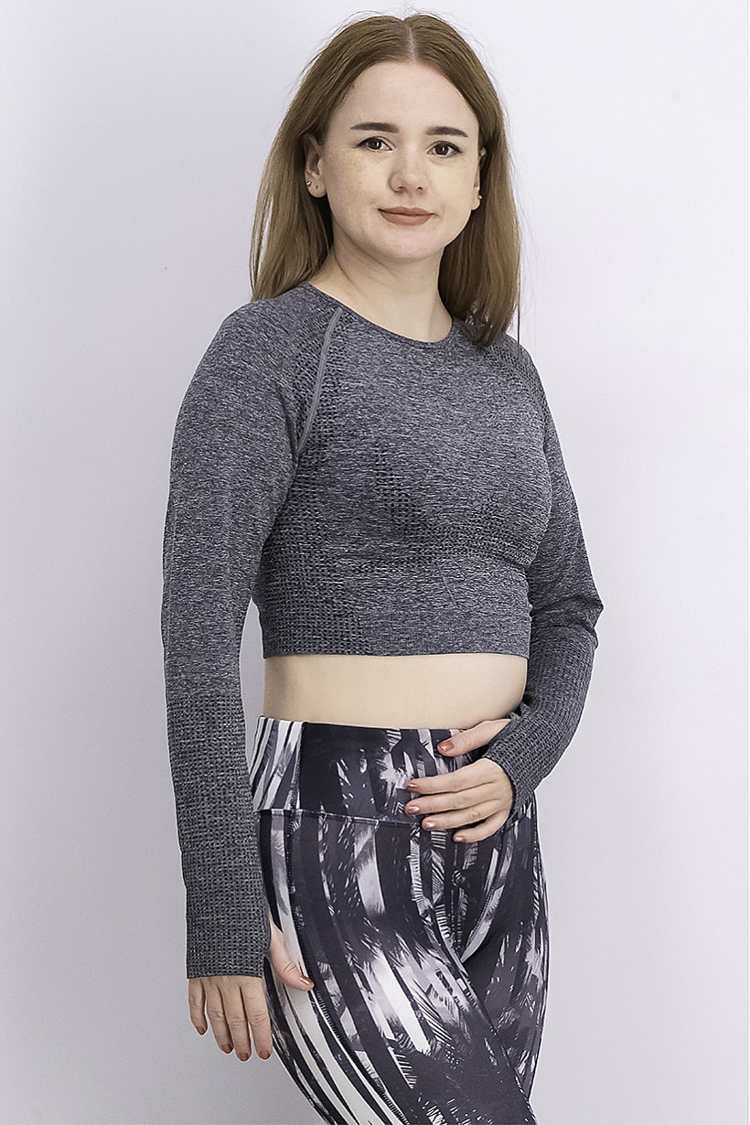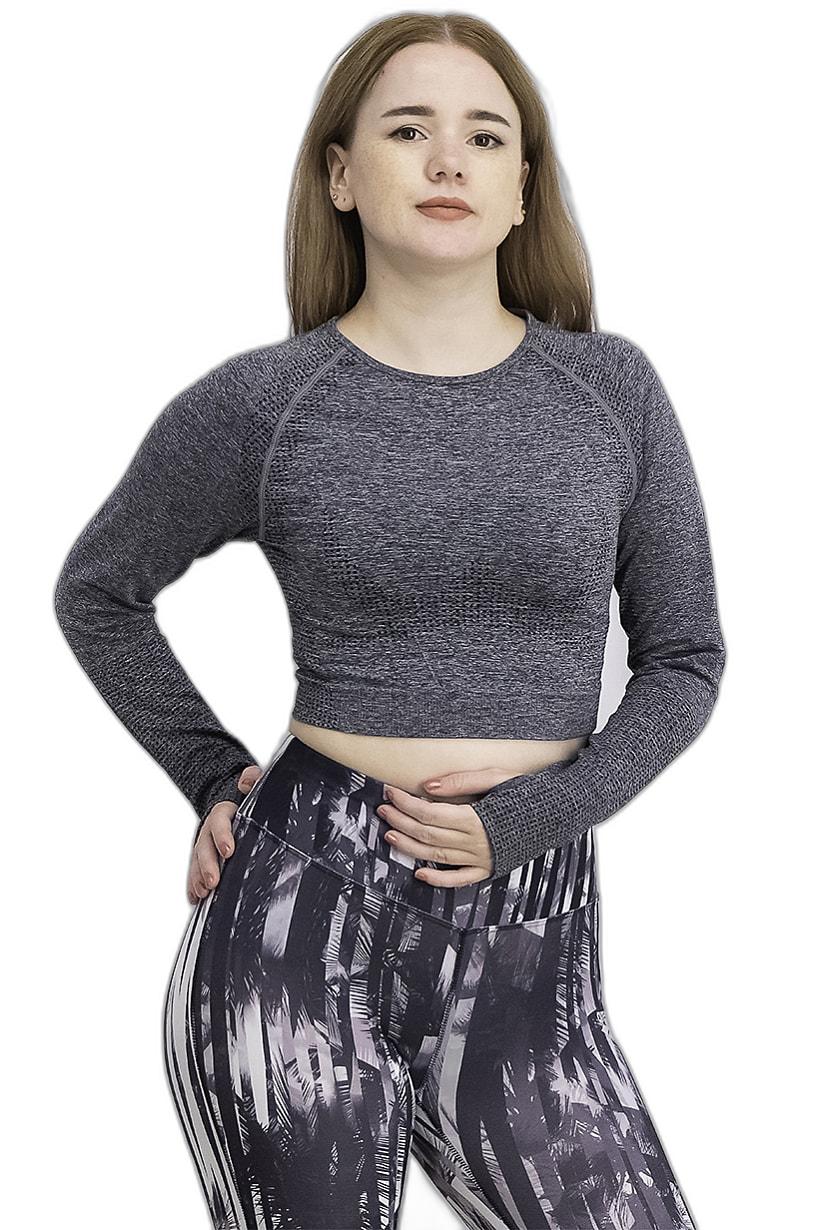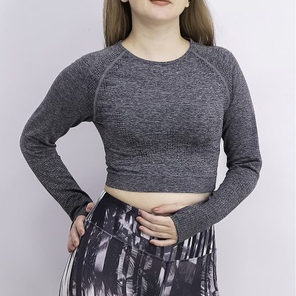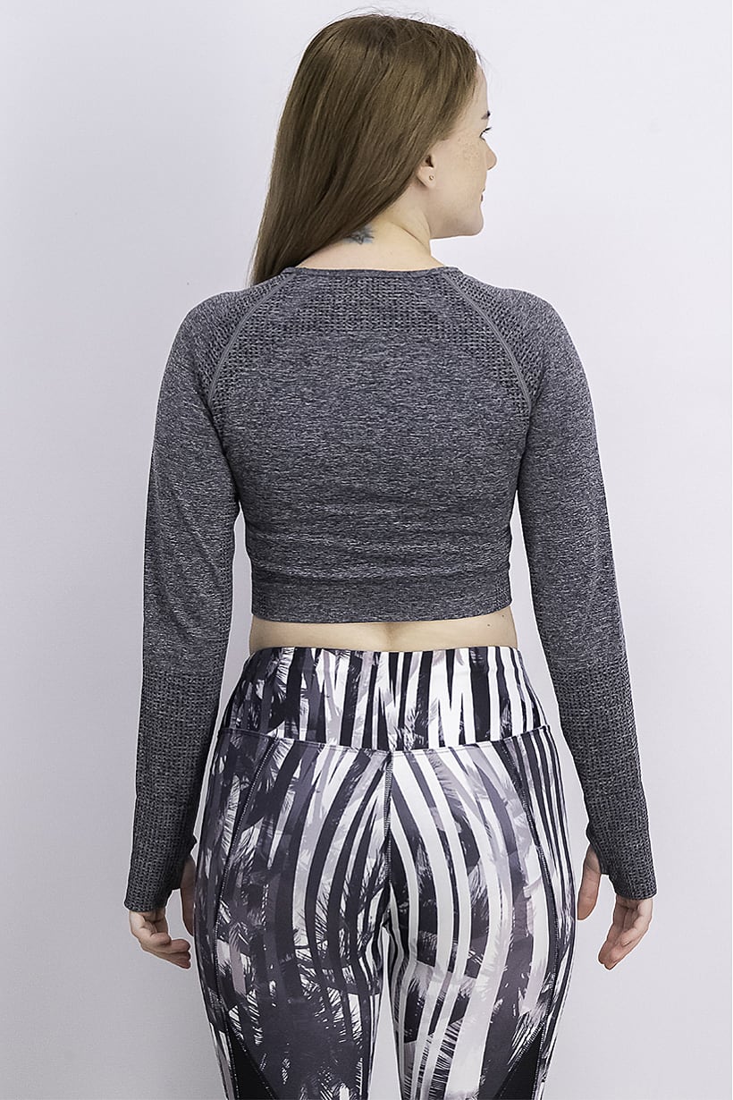 | sub_Categories | Women Clothing, Sportswear, women sports fit long sleeve textured crop top charcoal |