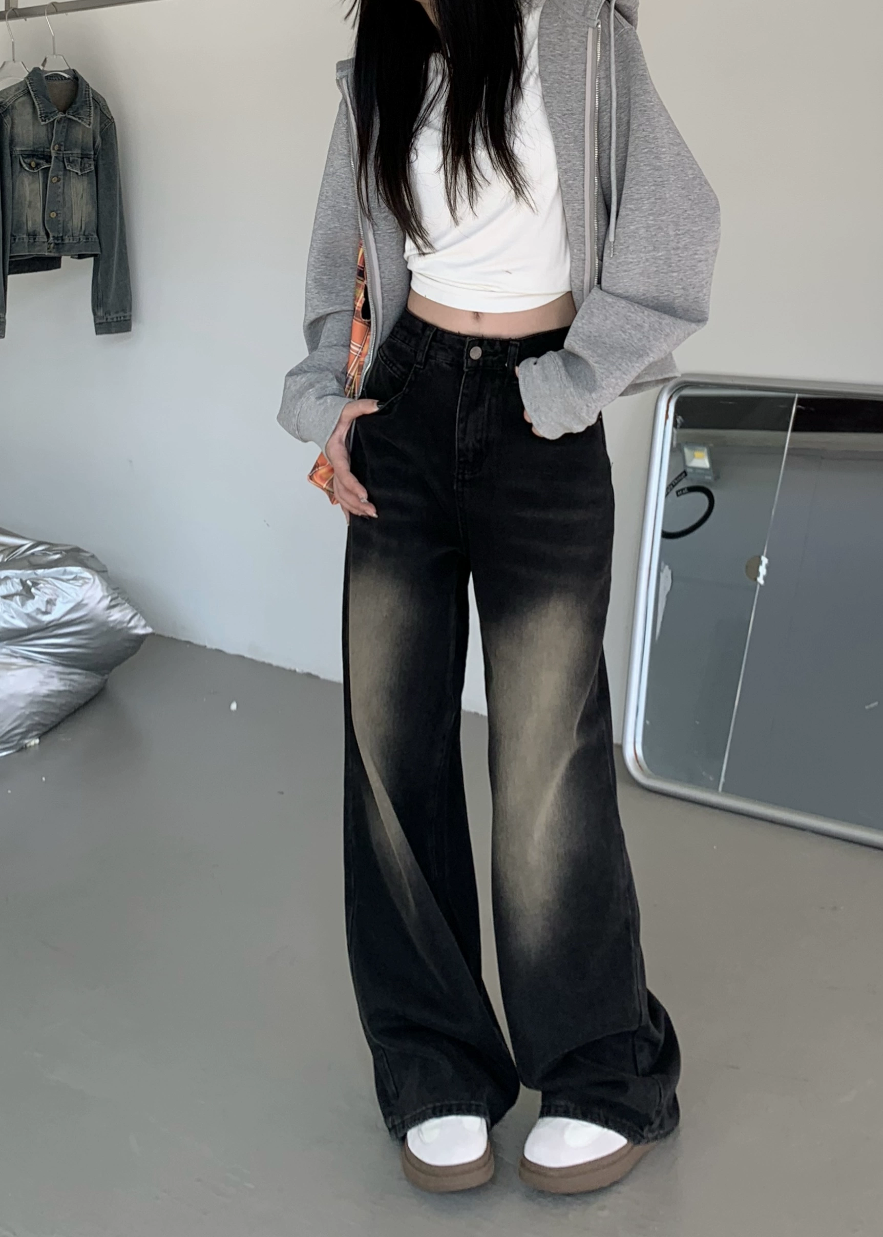 | nameOriginal | Charcoal washed high-waisted early spring floor-length trousers with embroidery |