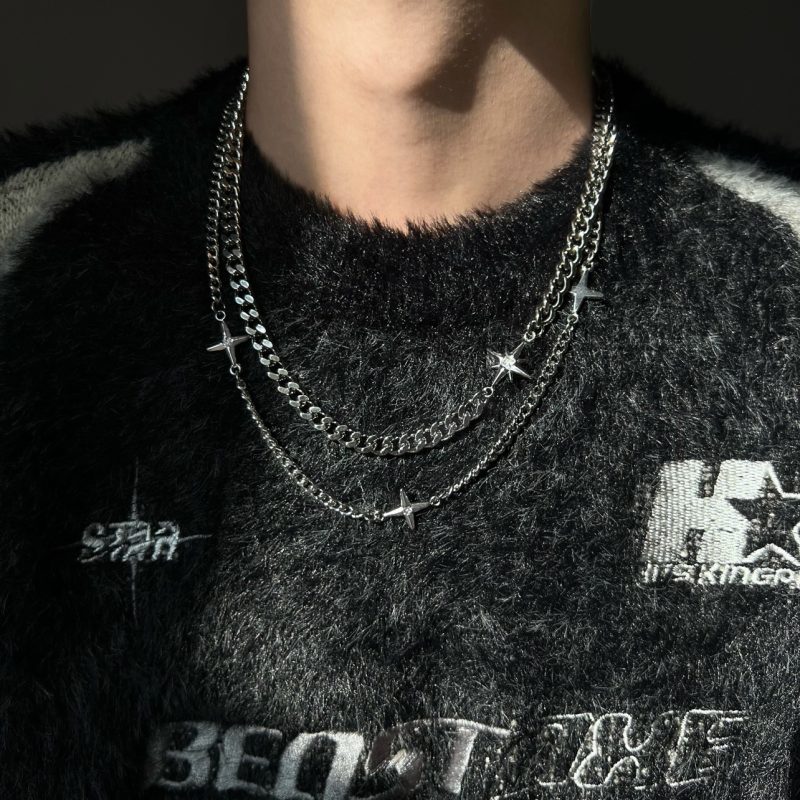 nameOriginal | CHEALIMPID/. Starburst stacked double-layer titanium steel necklace street hip-hop trend original niche design for men and women |