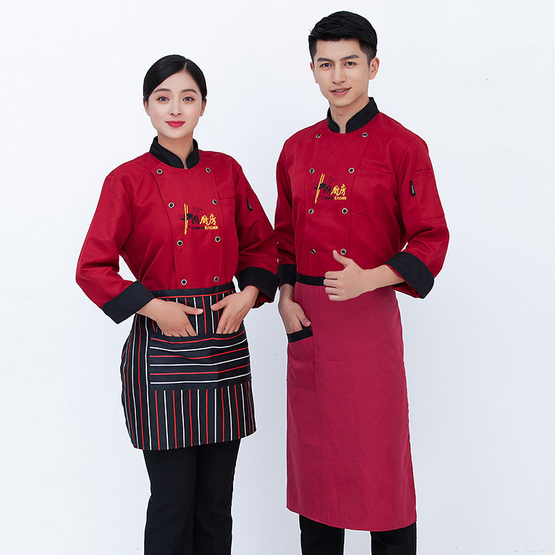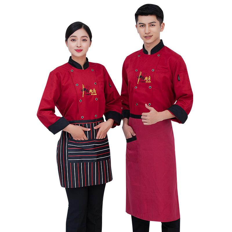 Chef Work Clothes Men's and Women's Long Sleeve Autumn and Winter Hotel Restaurant Western Food Kitchen Breathable Sweat-absorbent Chef Clothes