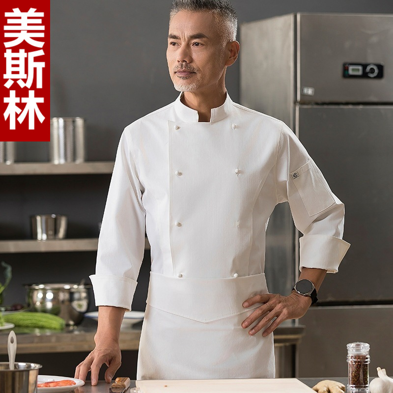 ملابس عمل الشيف، مطبوعة لتقديم الطعام، المطاعم، الطبخ، ملابس الشيف الرئيسي، ملابس عمل بأكمام طويلة، ملابس الخريف والشتاء للرجال