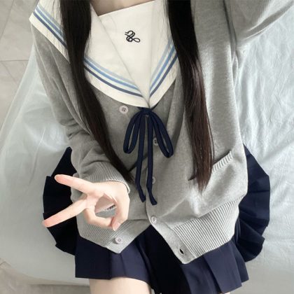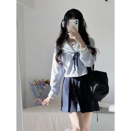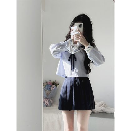 Cherry jk original water color sailor suit Japanese college style basic school for uniform pleated skirt suit women
