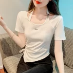 | nameOriginal | Chic design short-sleeved irregular drawstring halter neck |
