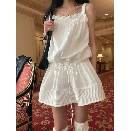 chic Korean age-reducing suspender dress summer lace