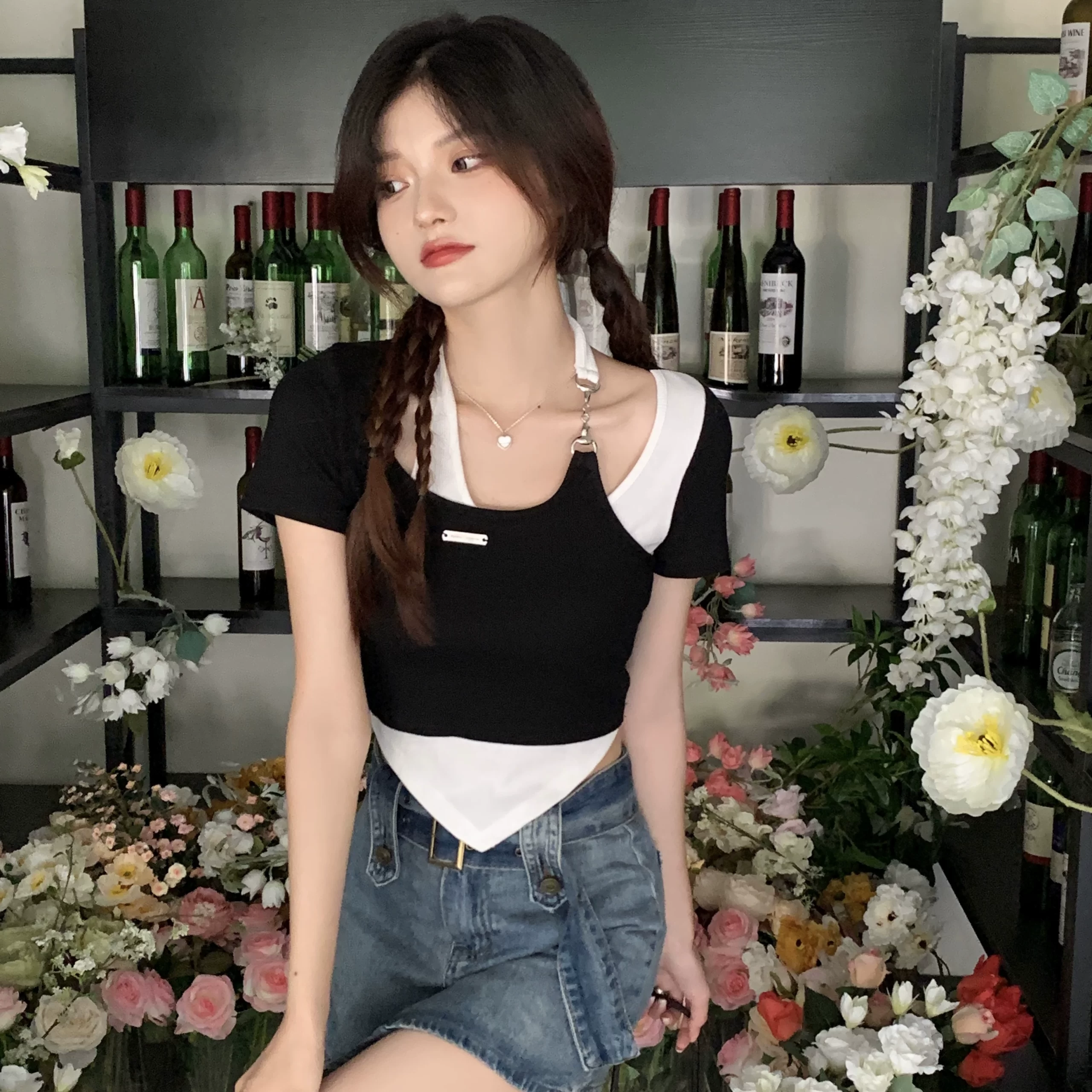 | nameOriginal | chic large size short sleeve t-shirt fat mm top fake two pieces |