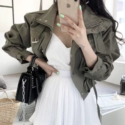 chic loose waisted short jacket with drawstring