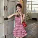 | nameOriginal | chic summer A-line red plaid suspender skirt |