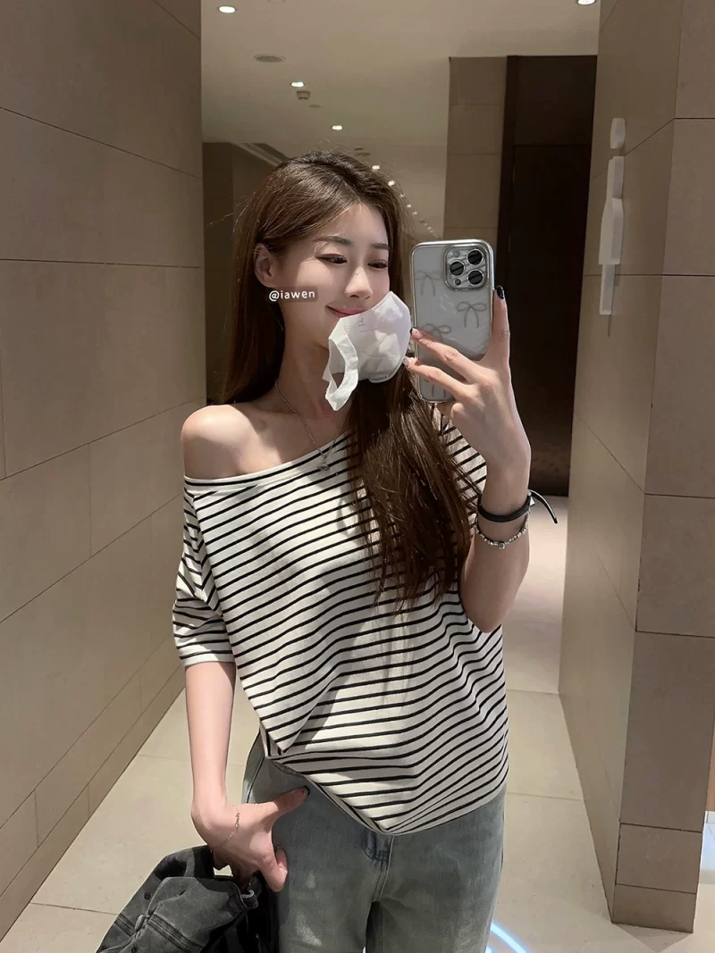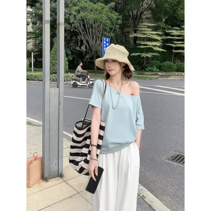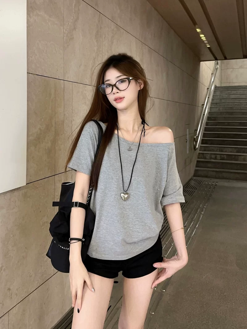 تي شيرت صيفي أنيق باللون الرمادي بأكمام قصيرة