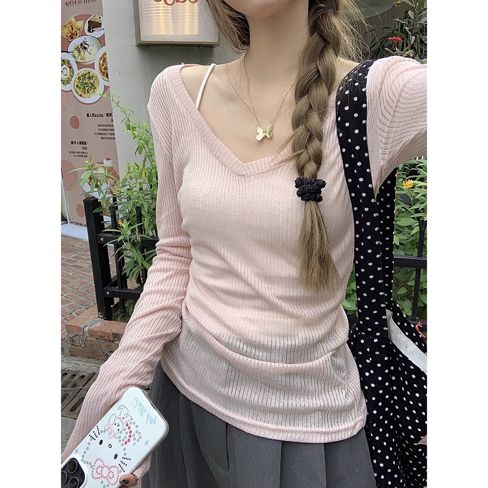 | nameOriginal | Chic thin V-neck summer slim niche long-sleeved T-shirt |