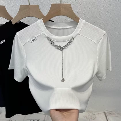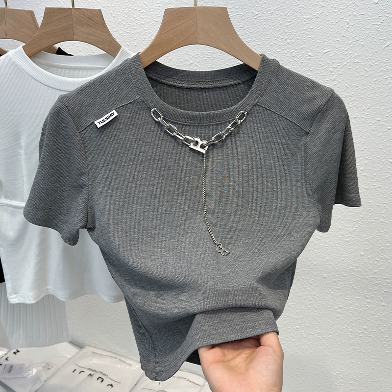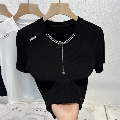 Chic women's summer niche fashionable hot girl short-sleeved T-shirt