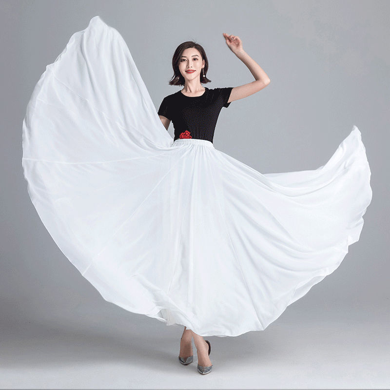 | nameOriginal | Chiffon 720-degree dance large swing skirt spring and summer new double-layer skirt high waist solid color plus size mop sand stall skirt |