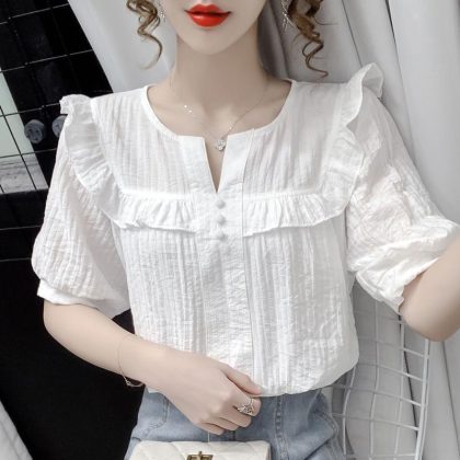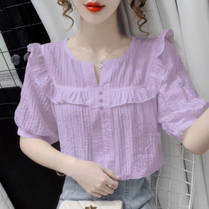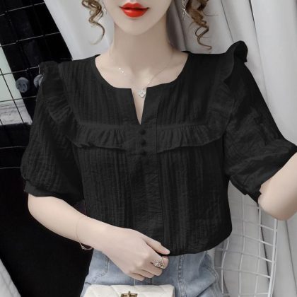 | nameOriginal | Chiffon Shirt Women's 2024 Summer New Arrival Fashionable Ear-rimmed Loose Doll Collar Shirt Stylish Slim Shirt |