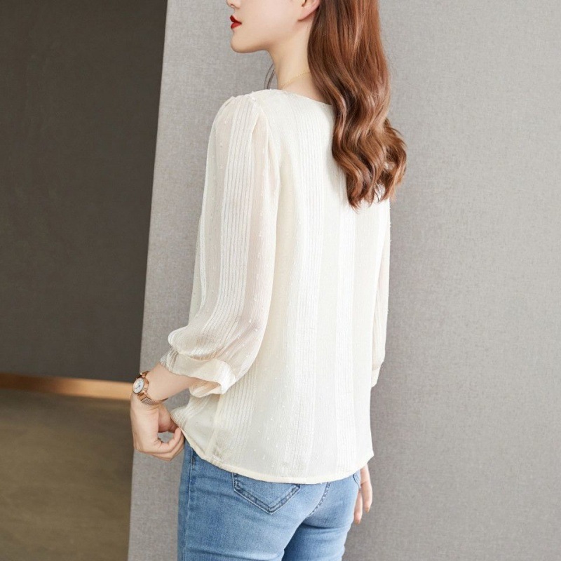 Chiffon shirt women's spring women's 2024 new three-point sleeve foreign style small shirt French square collar top