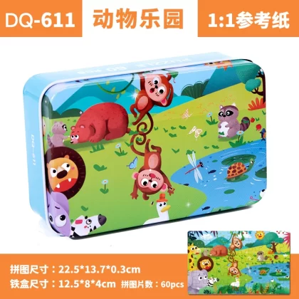 | nameOriginal | Children's 60-piece iron box puzzle 3-6-8 years old kindergarten building blocks boys and girls educational toy three-dimensional puzzle |