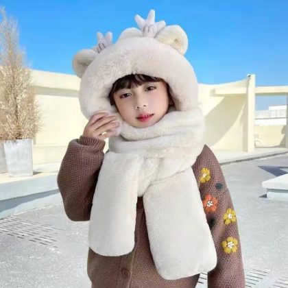 | nameOriginal | Children's antler hat winter girls warm three-piece scarf gloves baby cute thick ear protection |