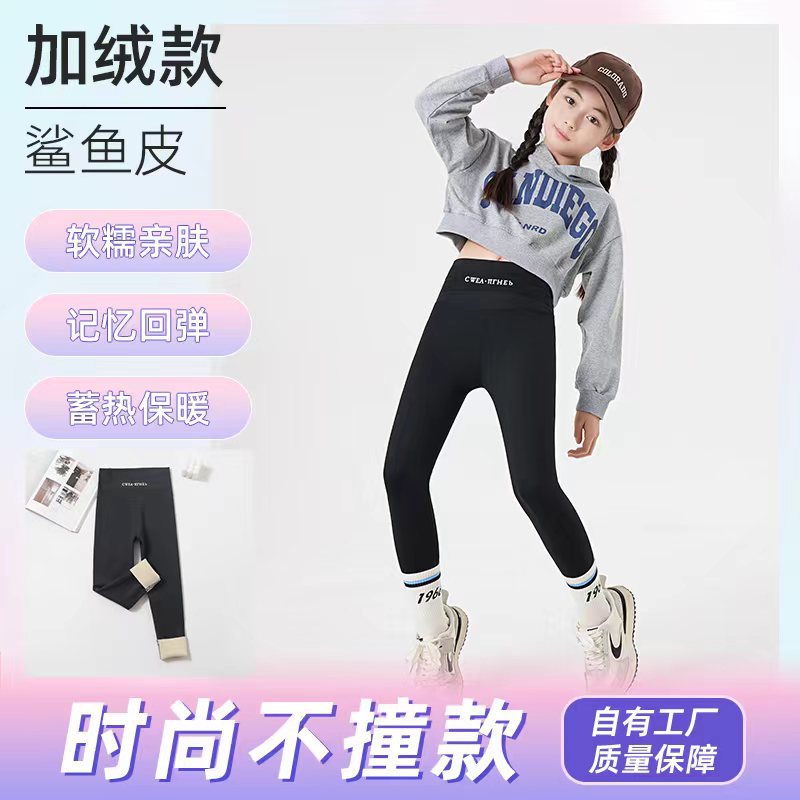 Children's Autumn and Winter Fleece-lined Shark Barbie Pants Girls' Western Style Leggings Trendy Style Girl's Outer Wear High Waist Long Pants