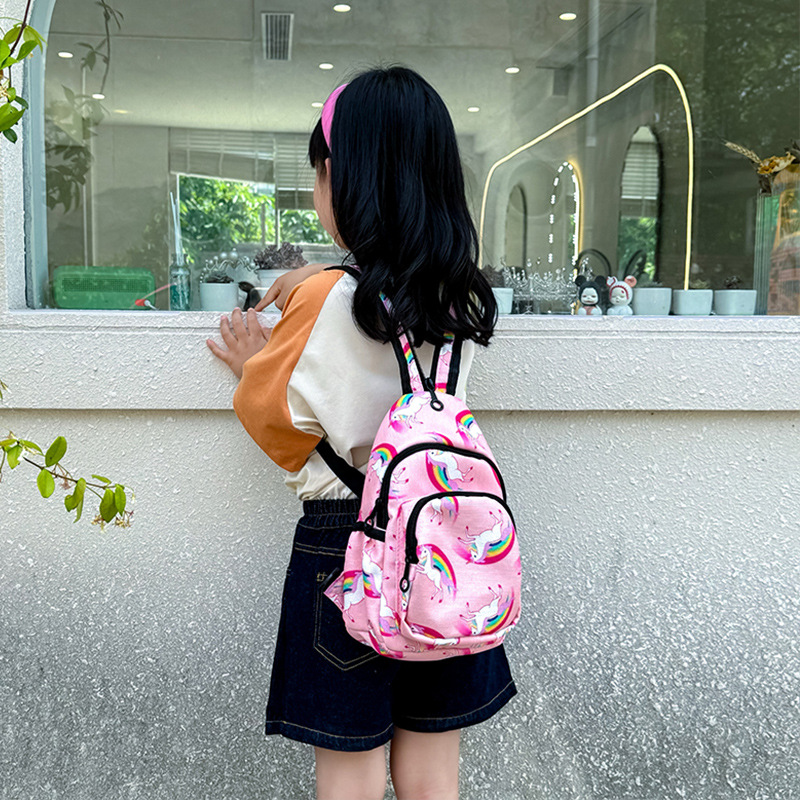 حقيبة أطفال 2024 حقيبة ظهر بناتي جديدة بطباعة وحيد القرن ذات سعة كبيرة حقيبة صدر للبنات حقيبة ظهر متعددة الأغراض