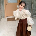 الأطفال قاع 2023 الخريف الفتيات الكورية الجولة الرقبة فقاعة كم بلون الداخلية للأطفال سميكة الدانتيل متابعة
