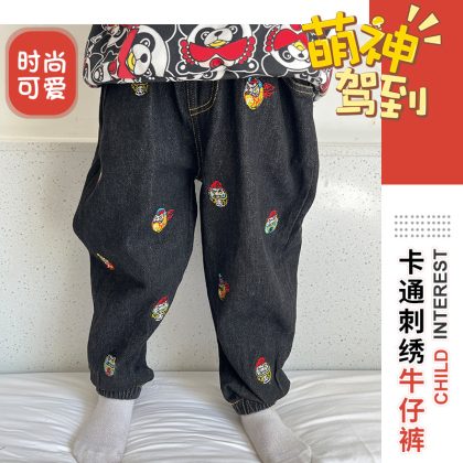 | nameOriginal | Children's Cartoon Face-Changing Monkey Embroidered Black Jeans Trendy All-Match Casual Pants Loose Pants with Velvet |