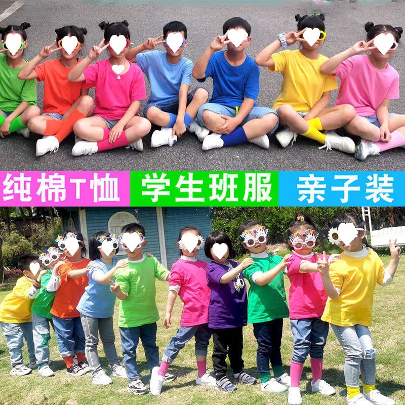 | nameOriginal | Children's Clothes Men's Color Shirt Cotton Primary School Students' Class Clothes Fruit Color Kindergarten Parent-Child Games Activities Short Sleeve |