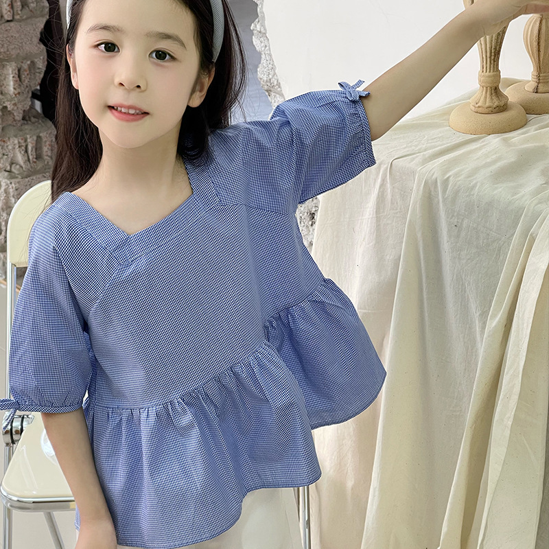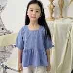 | nameOriginal | Children's Clothing 2024 Summer New Children's Retro Artistic Blue and White Plaid Small Shirt Parent-Child Puff Sleeve Square Collar Top |