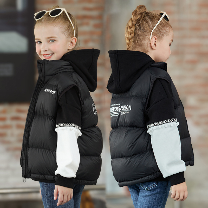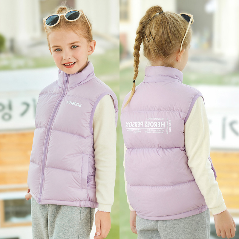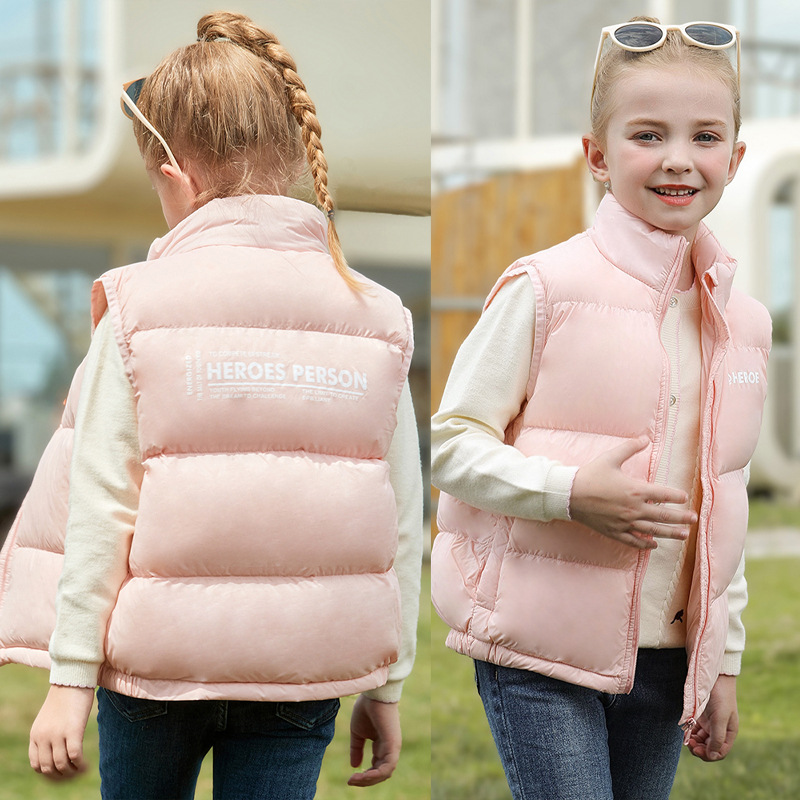 | nameOriginal | Children's clothing boys and girls autumn and winter fashion outerwear zipper letters solid color warm three-proof full down vest wholesale |