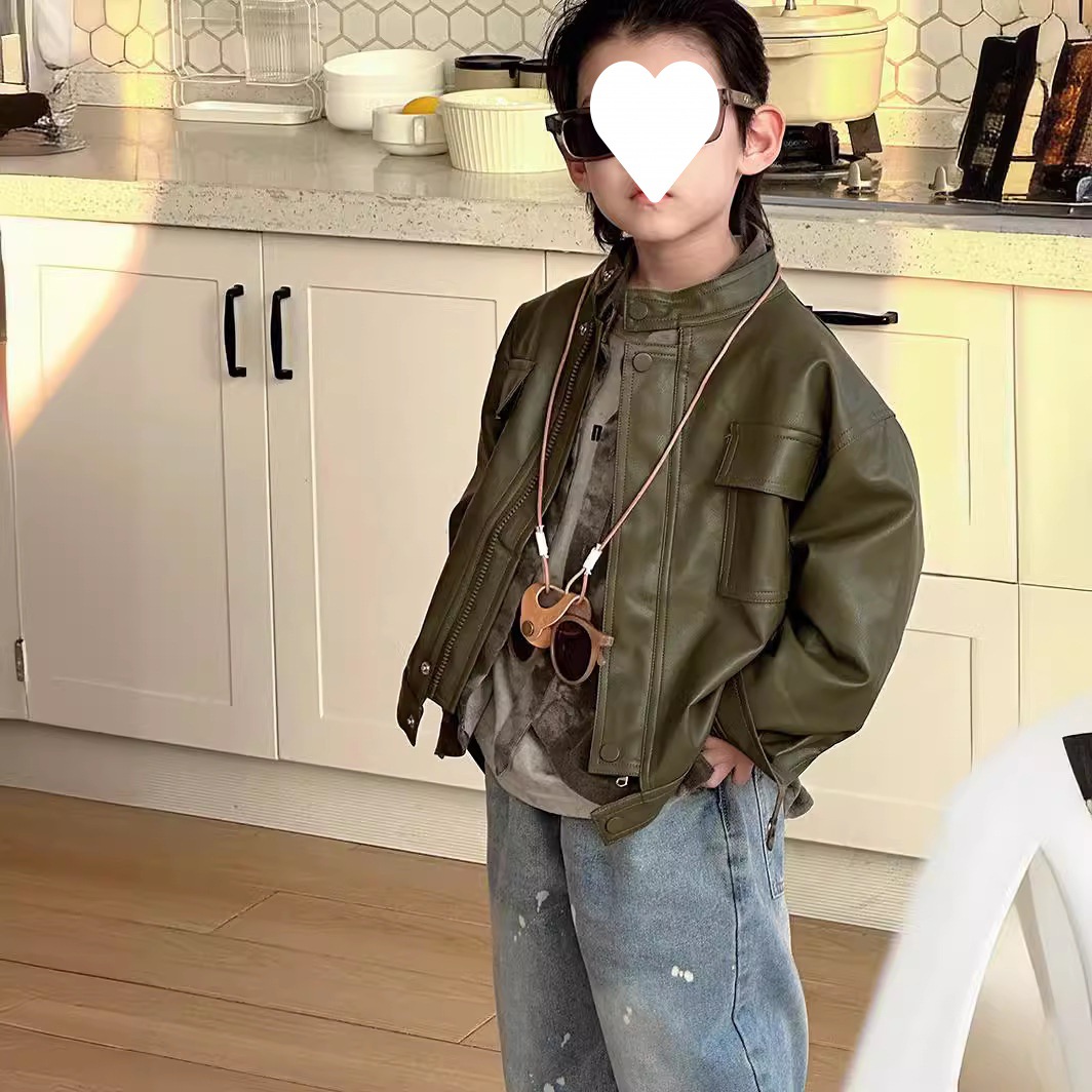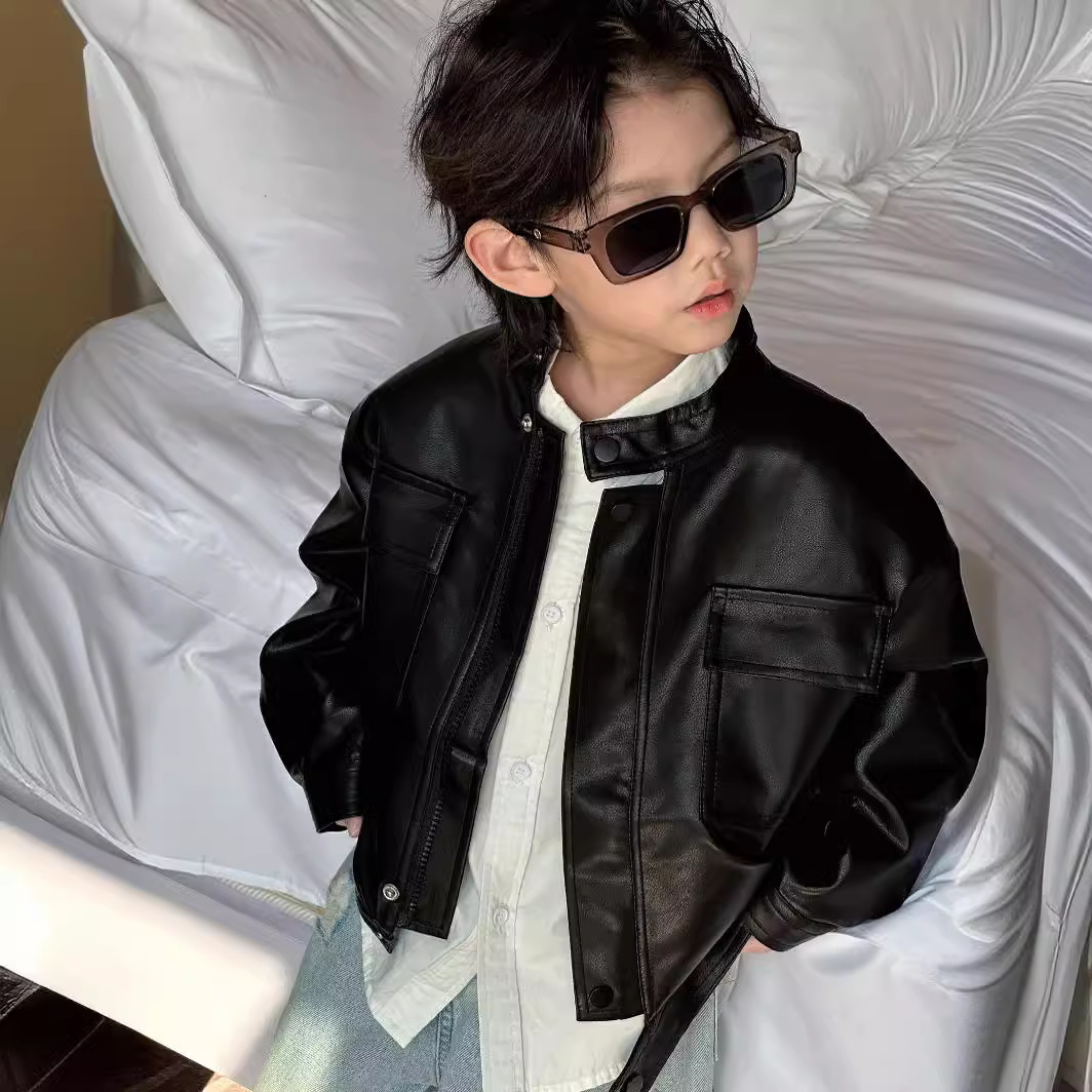 Children's Clothing Boys' Spring and Autumn Leather Coat for Middle and Small Children Korean Style Loose Boys Plutton Handsome Jacket Trendy Top