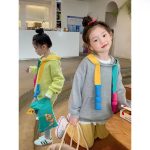nameOriginal | Children's clothing girls' 2023 spring new contrast color hooded sweater baby girls' Korean style western style loose comfortable top fashion |
