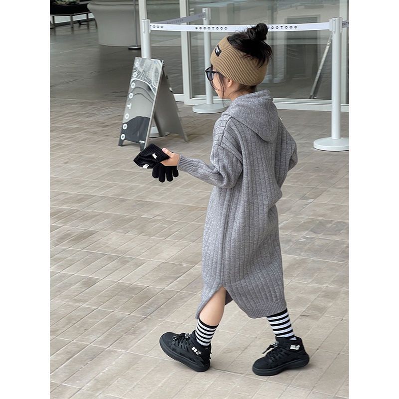 | nameOriginal | Children's clothing girls' dress autumn and winter medium and large children's western style sweater dress children's pit hooded knitted skirt |