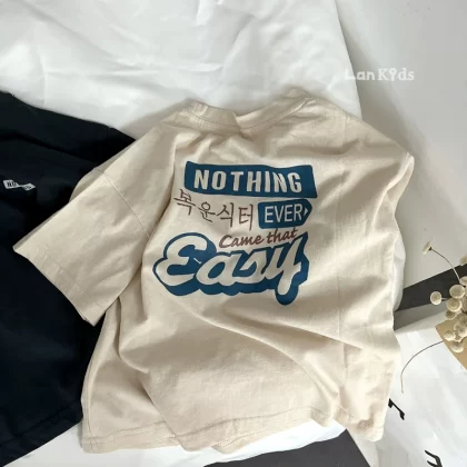 تي شيرت كاجوال بأكمام قصيرة مطبوع عليه حروف ملابس الأطفال