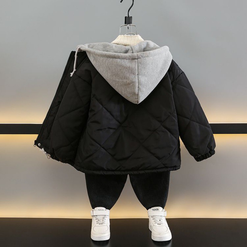 | nameOriginal | Children's cotton-padded clothes men's children's clothing winter fake two-piece hooded boys and girls thickened rhombus mid-length cotton-padded jacket coat fashionable pin |