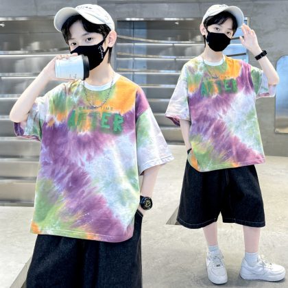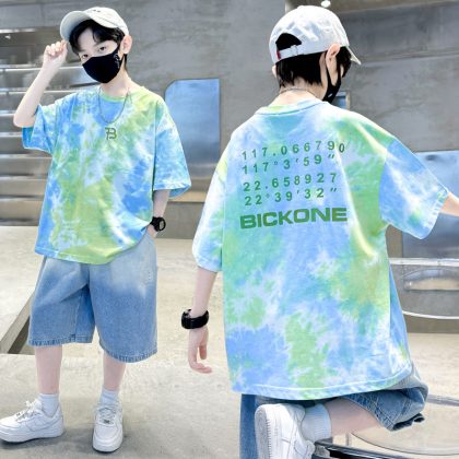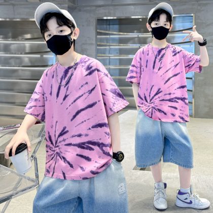| nameOriginal | Children's Cotton Short-sleeved T-shirt 2024 Summer New Fashion Cool Tie-dyed Student T-shirt Half-sleeved Top All-match 10-year-old 9-year-old |