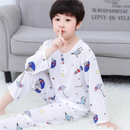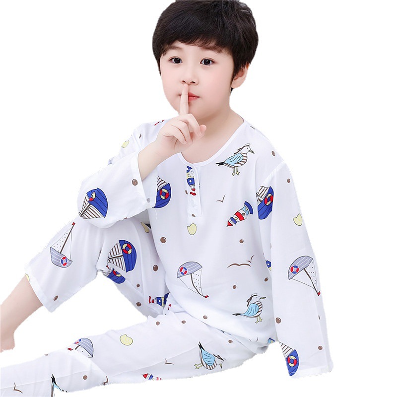 | nameOriginal | Children's Cotton Silk Pajamas Summer Air-conditioning Suit Girl's Thin Spring and Autumn Long Sleeve Cotton Silk Boy's Home Suit |