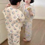 بدلة قطنية للأطفال 2024 صيفية صغيرة ومتوسطة الحجم للأولاد والبنات ملابس منزلية من القطن الخالص للأطفال سراويل قصيرة الأكمام مضادة للبعوض من غزل القطن