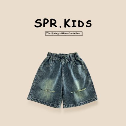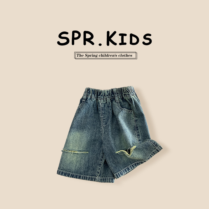 | nameOriginal | Children's Denim shorts cropped pants Summer 2024 new boys' ripped pants children's thin summer clothes western style |